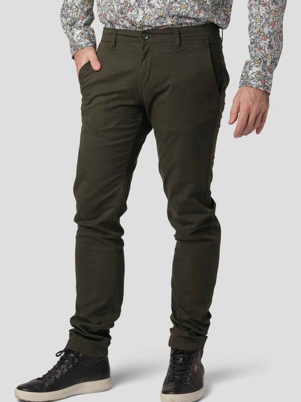 Ανδρικό παντελόνι print chino,της Ελληνικής εταιρείας LEXTON,βαμβάκι 97% -ελαστάν 3%,σε regular fit γραμμή,χρώματος λαδί.